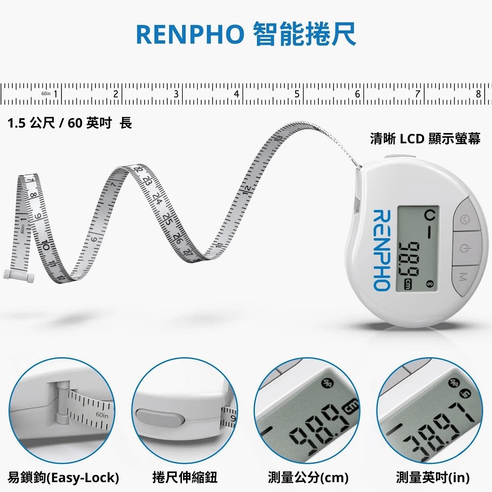 * 貼心的易鎖鉤 (Easy-Lock) 設計 ,在測量時不再需要其他人的幫助。