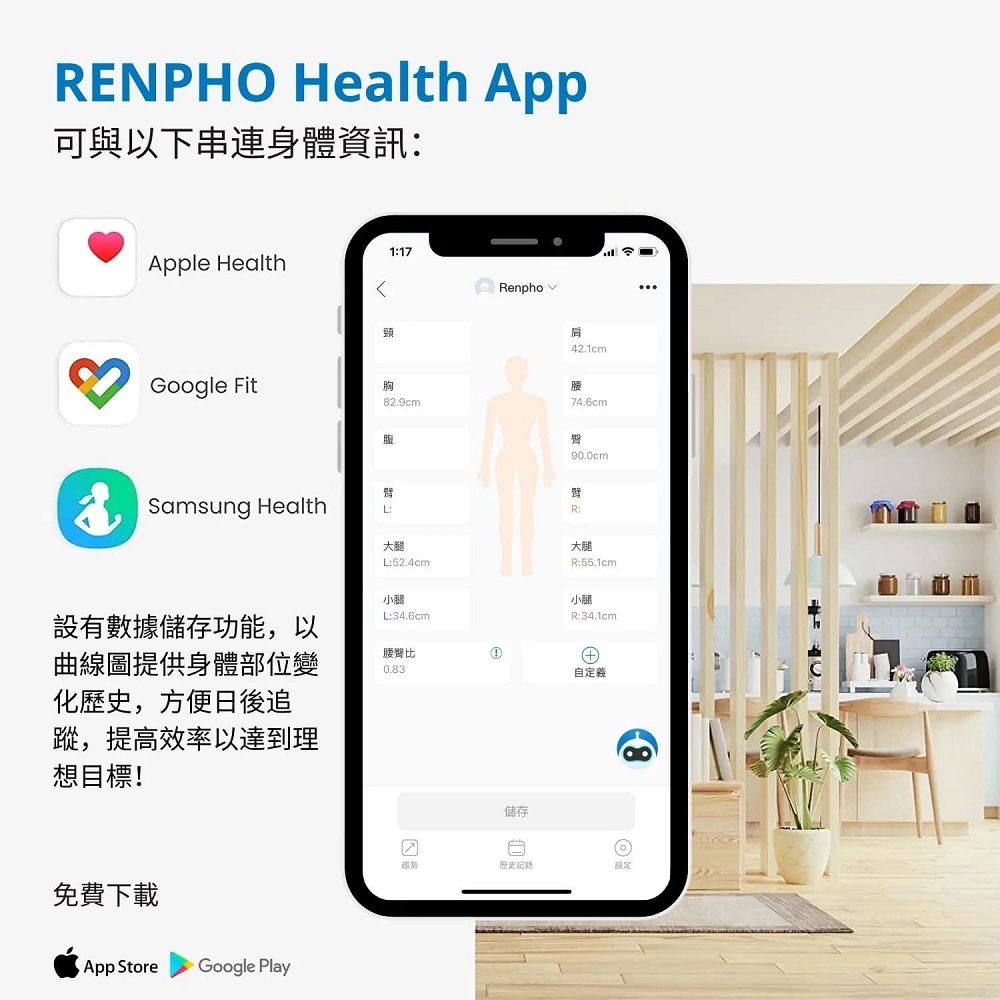 * RENPHO Health APP 應用程式即時保存測量數據,免去紀錄麻煩!