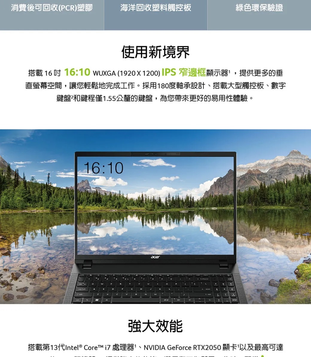 ■螢幕16" WUXGA IPS / 解析度:1920 x 1200