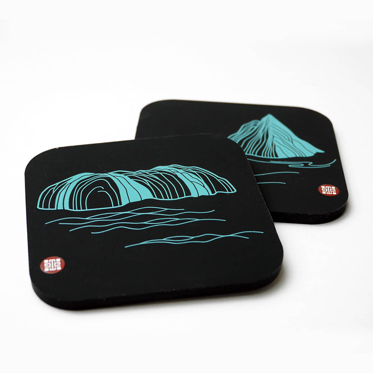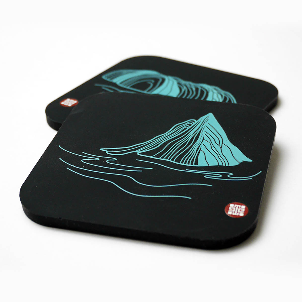 展開《鵲華秋色圖》,左右矗立著半圓形的鵲山和三角形的華不注山,以此山形作為杯墊創意發想。