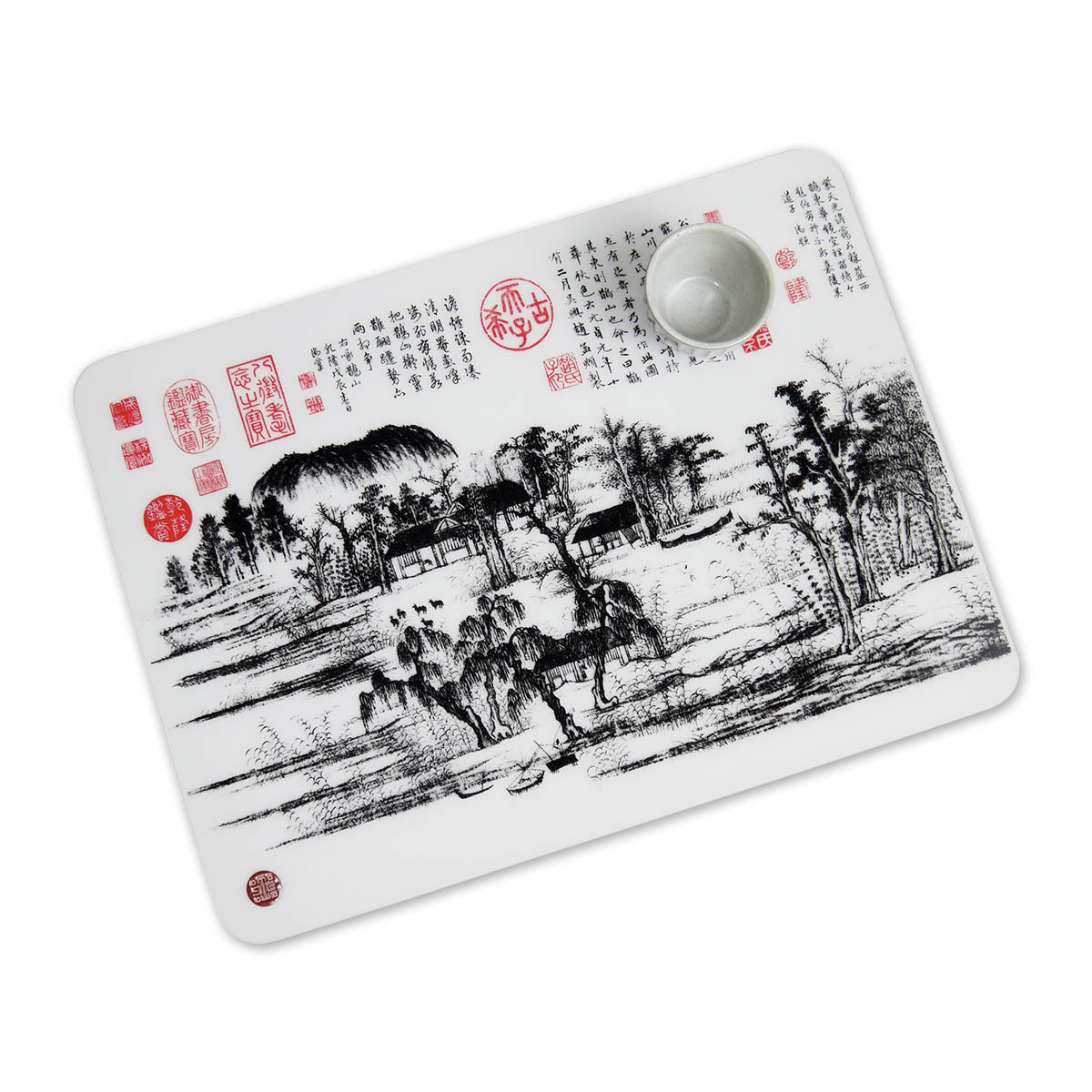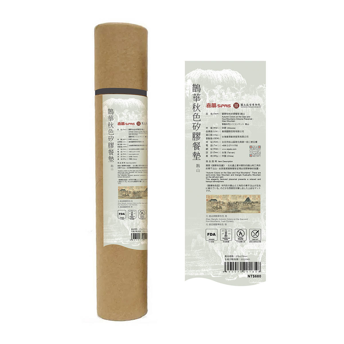 展開《鵲華秋色圖》,左右矗立著半圓形的鵲山和三角形的華不注山。此款質感優雅餐墊呈現出悠閒寧靜的氛圍。