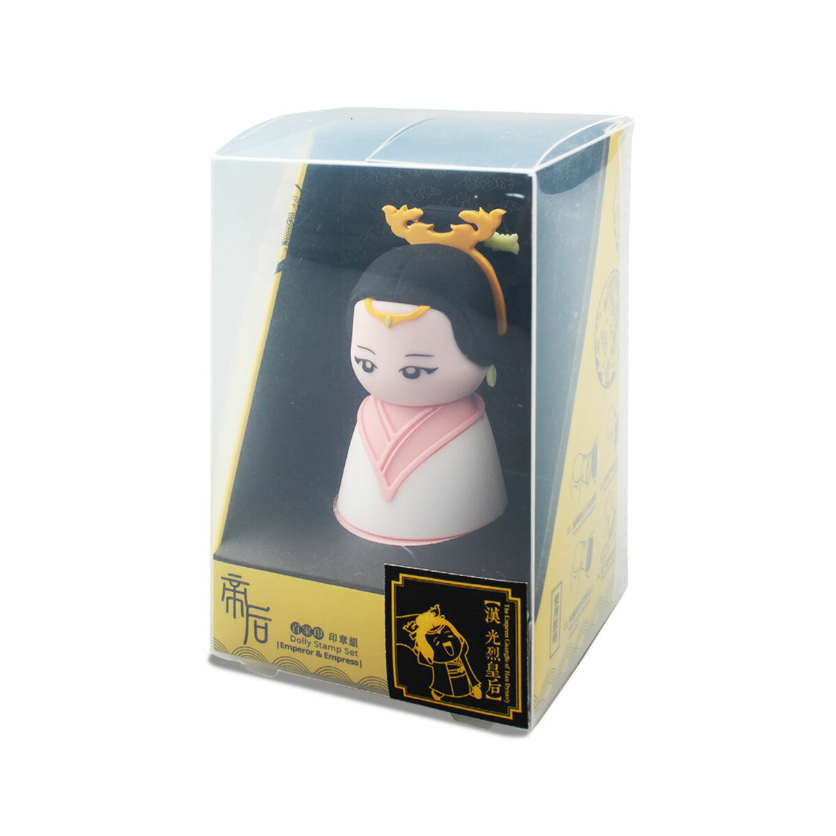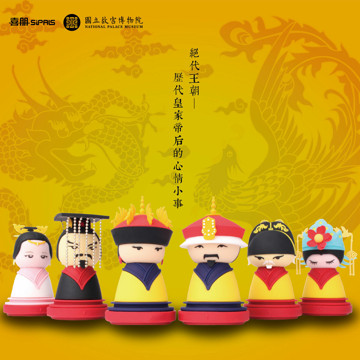 趣味性十足的帝后系列公仔印章,靈感源於國立故宮博物院珍藏圖—【中國歷代著名皇帝與皇后】相關圖像。獨家創新可拆卸式印章設計,提供多樣印章選擇增添玩樂互動性。並以帝后之姿象徵中國傳統龍鳳形象,傳遞龍鳳呈祥的祝福意涵。