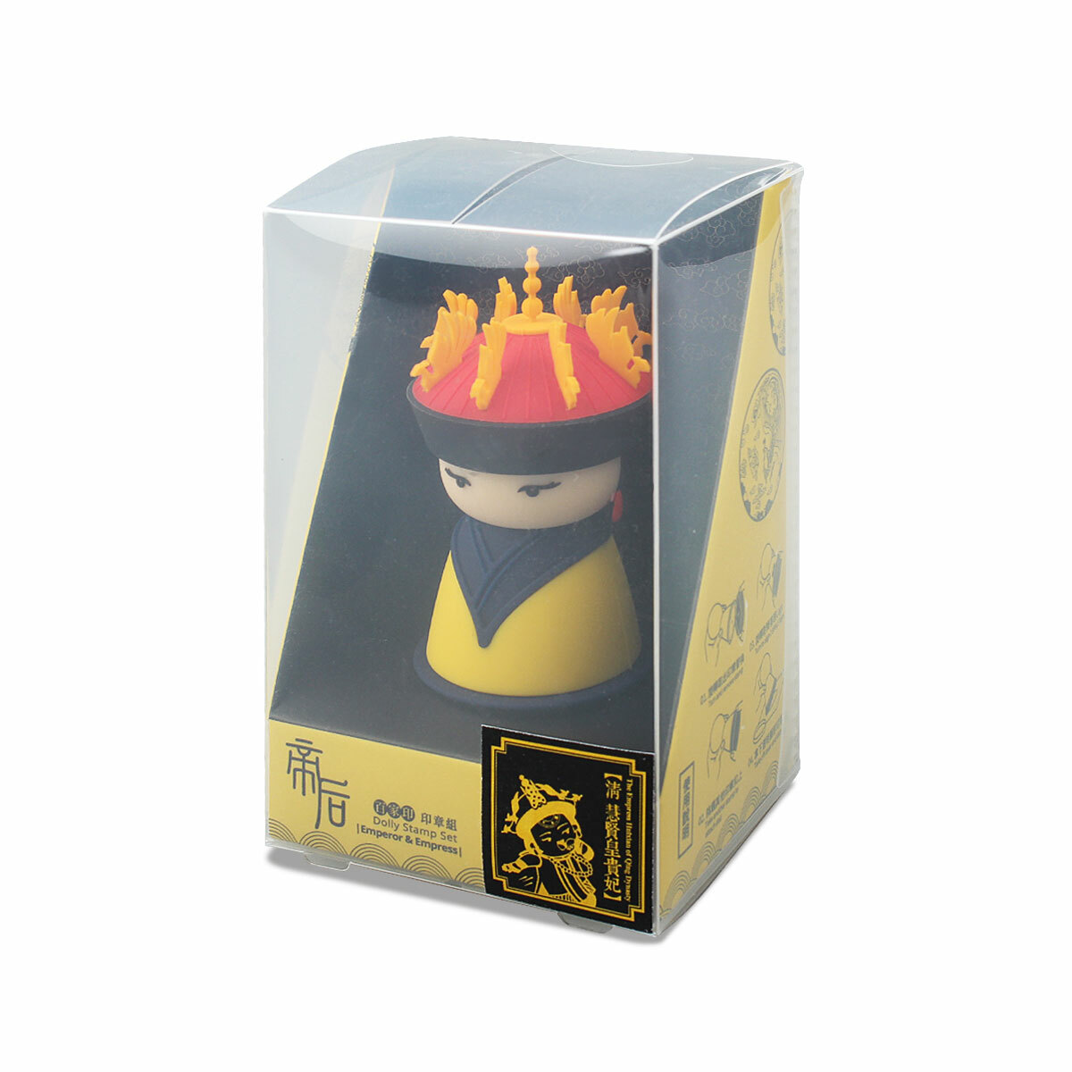 趣味性十足的帝后系列公仔印章,靈感源於國立故宮博物院珍藏圖—【中國歷代著名皇帝與皇后】相關圖像。獨家創新可拆卸式印章設計,提供多樣印章選擇增添玩樂互動性。並以帝后之姿象徵中國傳統龍鳳形象,傳遞龍鳳呈祥的祝福意涵。