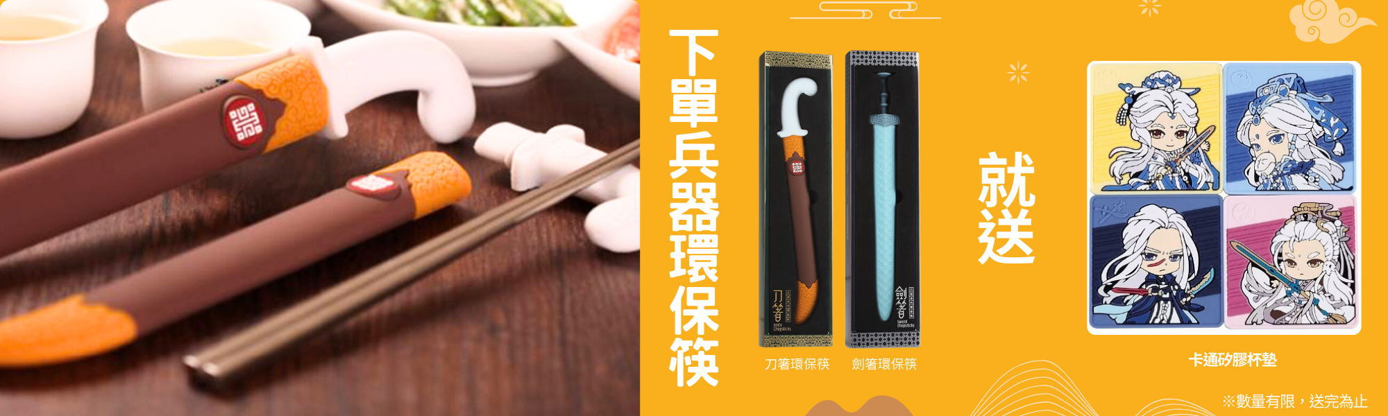 現在下單,食兵器-刀箸環保筷,就送矽膠杯墊,數量有限送完為止