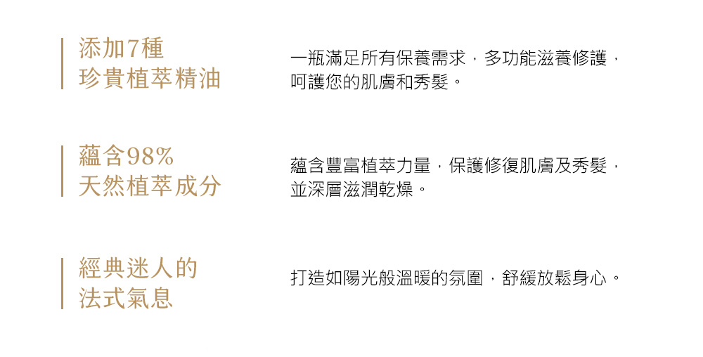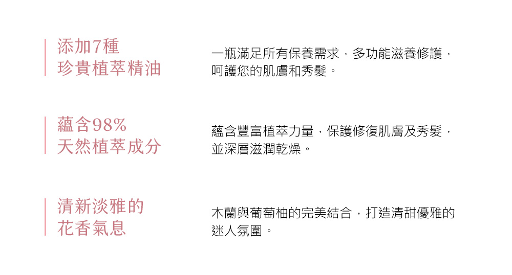 ●恢復肌膚緊緻彈潤+提升髮絲光澤。
