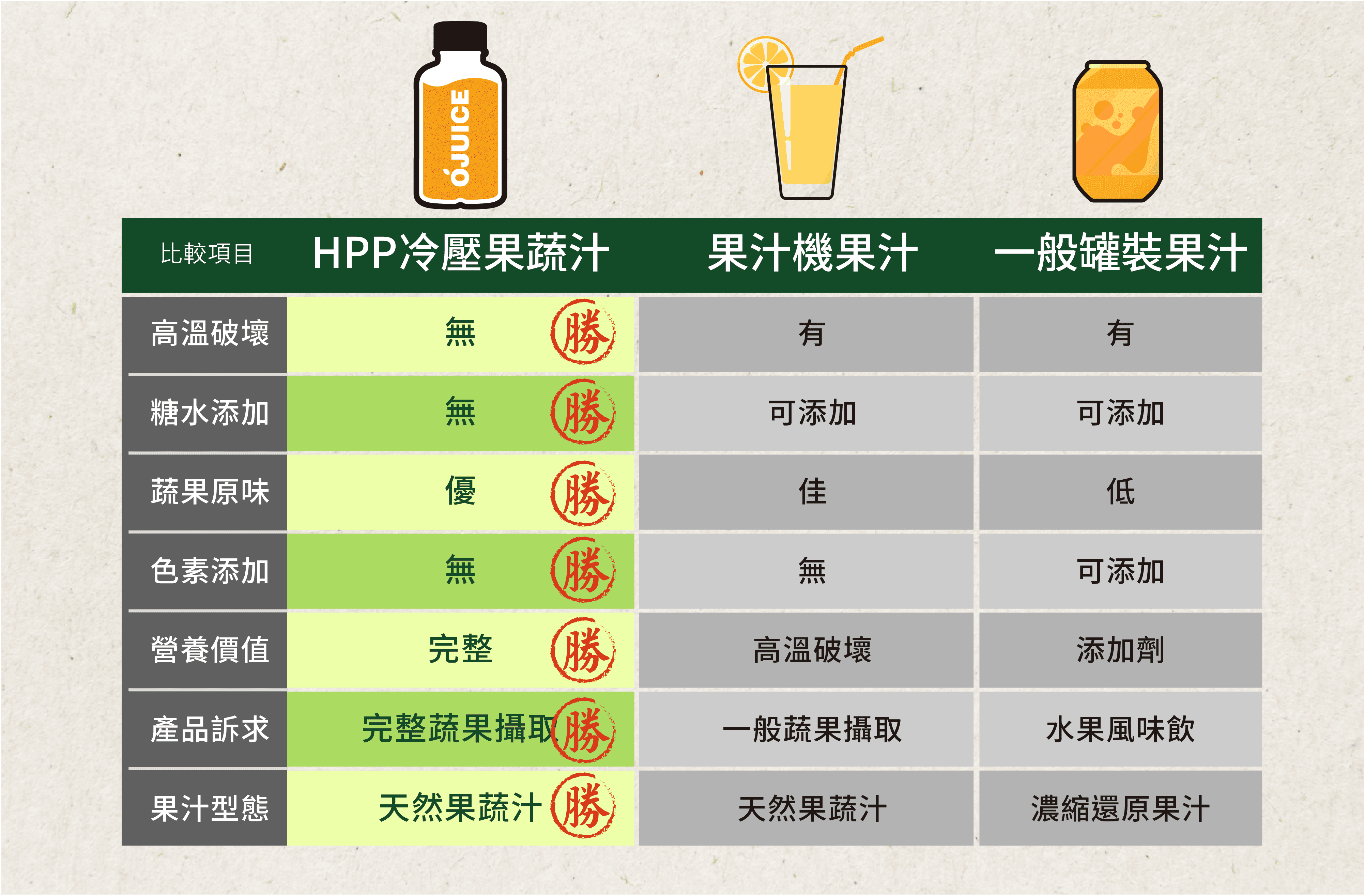 ■ 採用HPP高壓低溫滅菌技術,完整保留蔬果新鮮風味、營養。