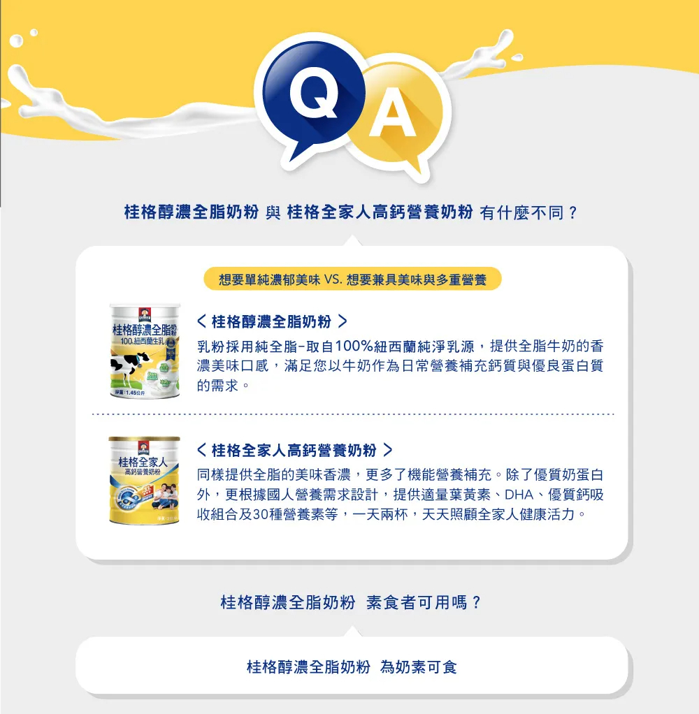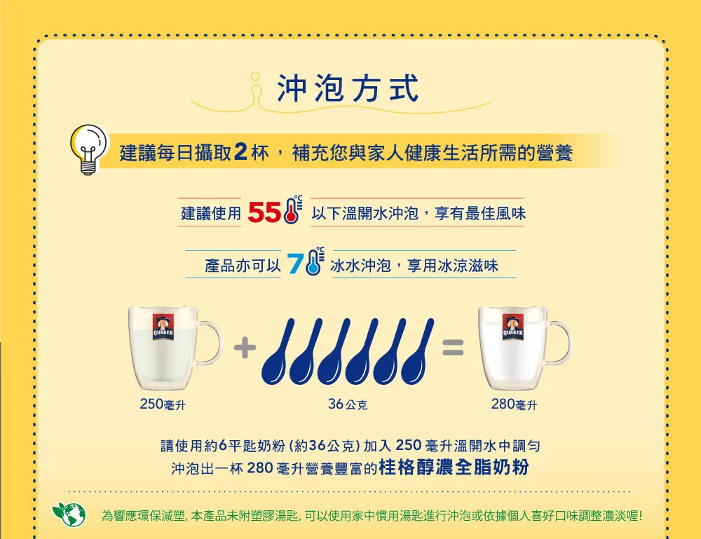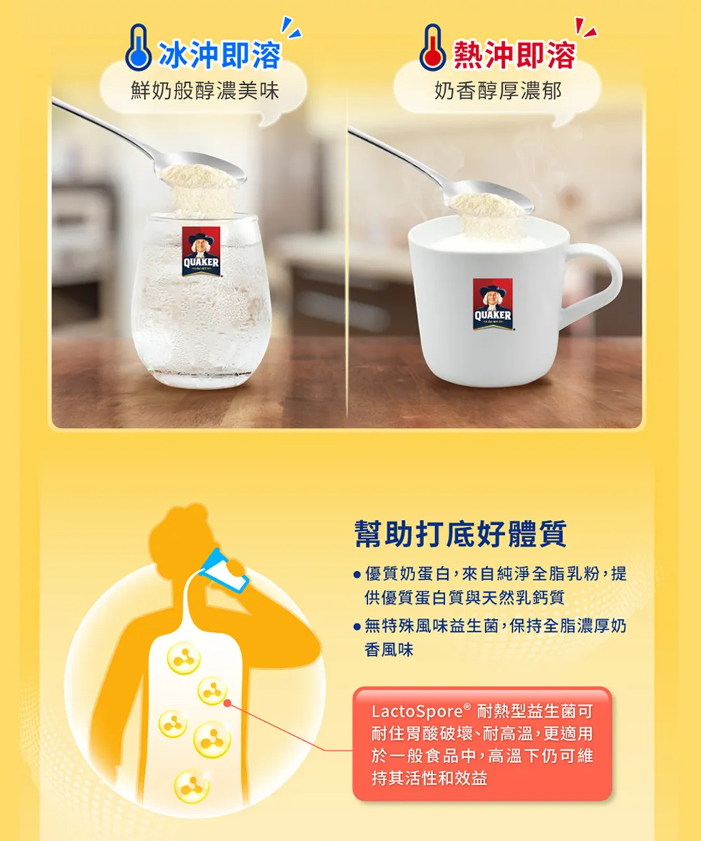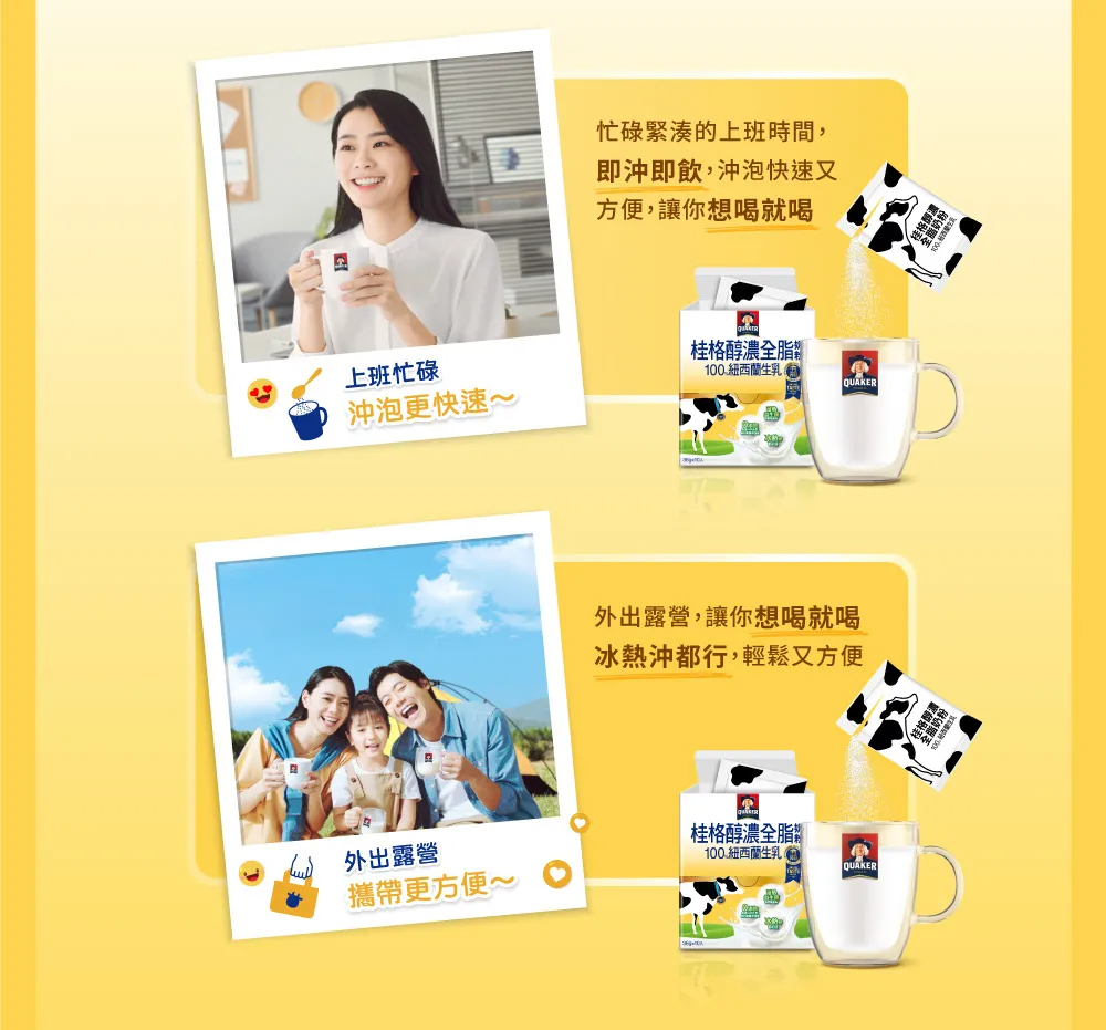 -取自單一產地全脂乳粉,濃厚奶香的美味口感, 即沖即溶,方便快速