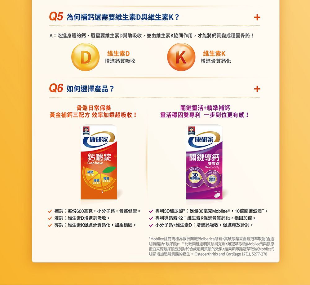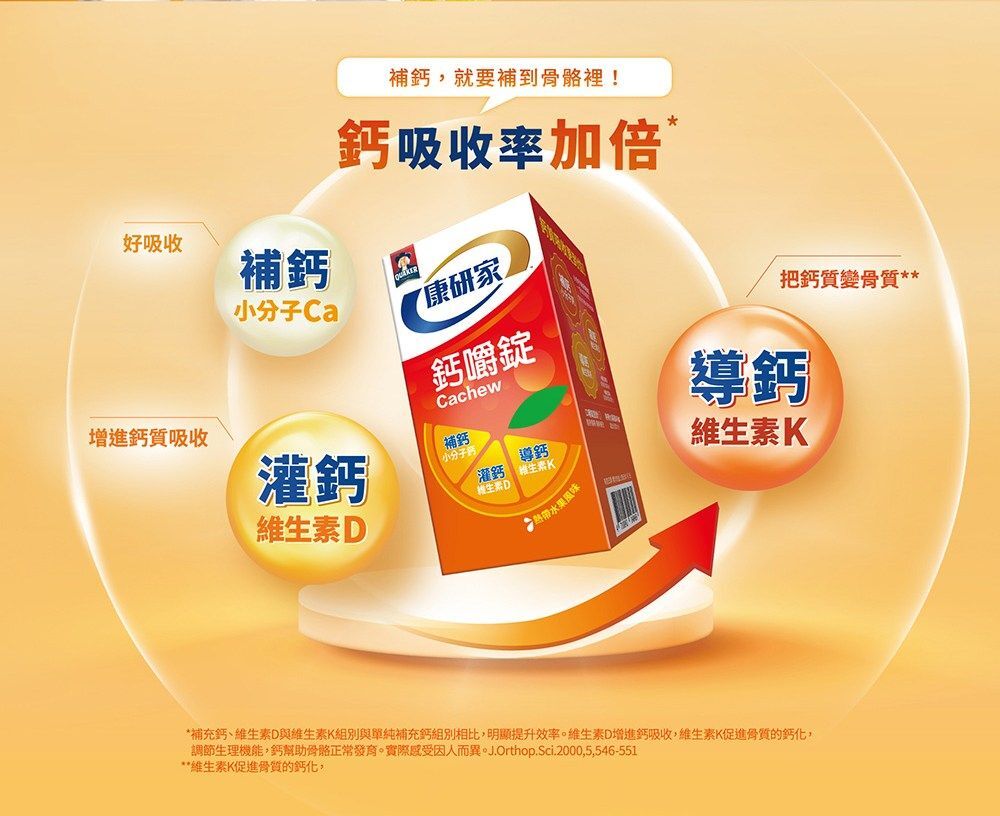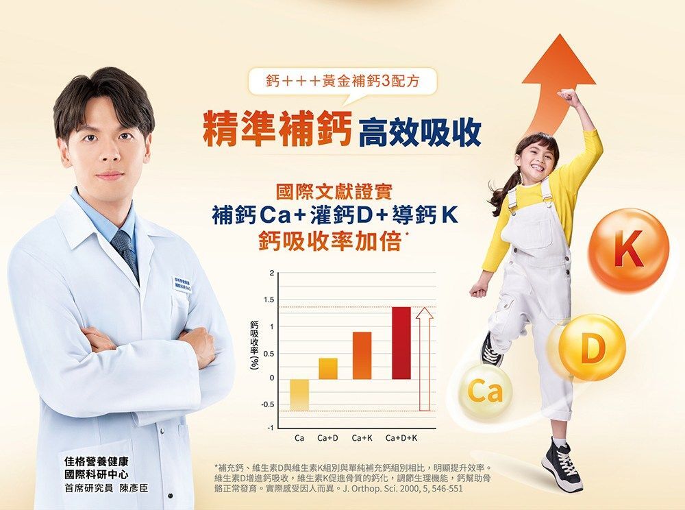 *補充鈣、維生素D與維生素K組別與單純補充鈣組別相比,明顯提升效率。維生素D增進鈣吸收,維生素K促進骨質的鈣化,調節生理機能,鈣幫助骨骼正常發育。實際感受因人而異