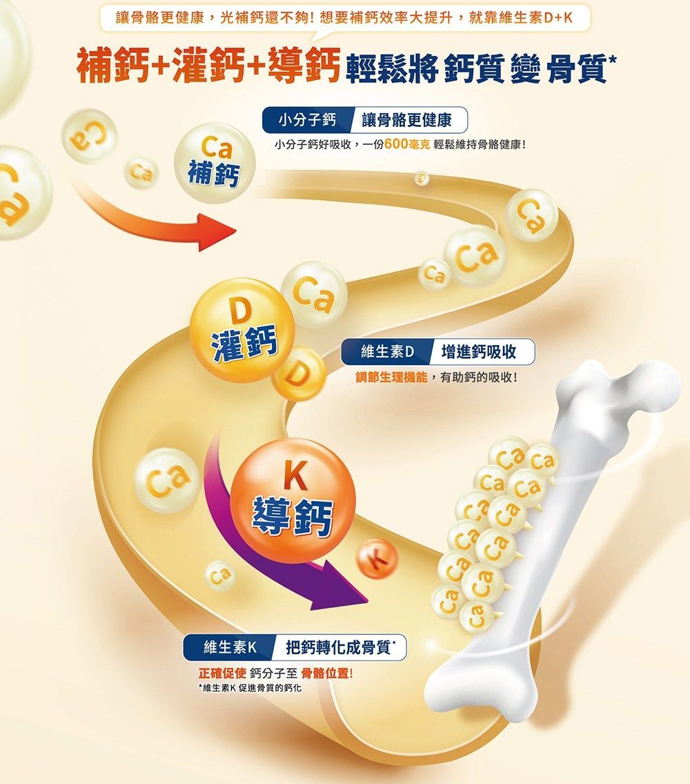 ✅600mg小分子鈣+維生素D3+K2,鈣吸收率+170%*