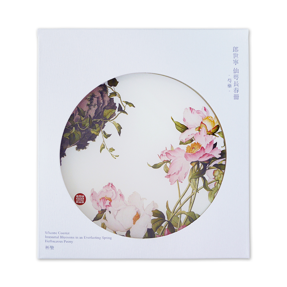 本商品創意來自於國立故宮博物院「清郎世寧畫仙萼長春 冊 芍藥」。取其做成矽膠杯墊,將此經典作品融入現代的日常生活中。