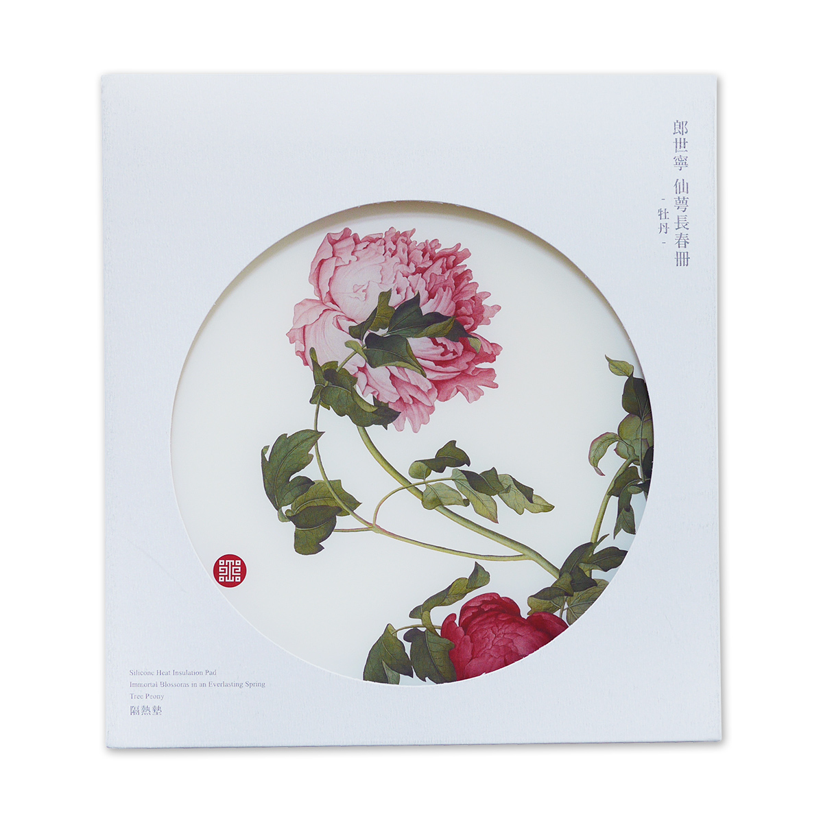 本商品創意來自於國立故宮博物院「清 郎世寧畫仙萼長春 冊 牡丹」。取其做成矽膠隔熱墊,將此經典作品融入現代的日常生活中。