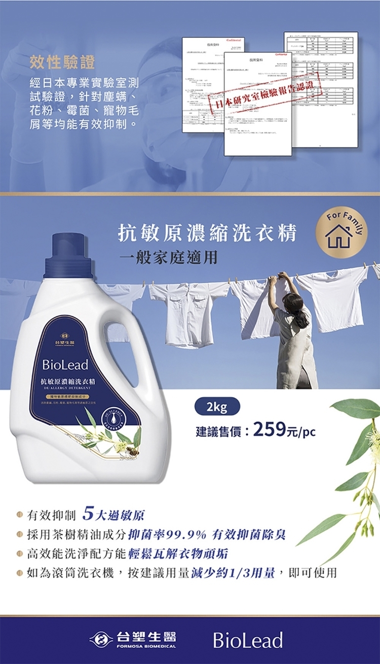 品名:BioLead抗敏原濃縮洗衣精補充包1.8kg(6包入)
