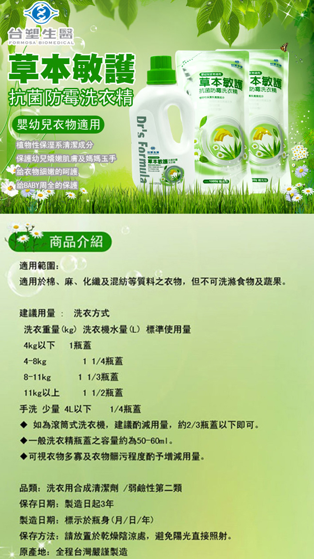 品名:Drs Formula草本敏護-抗菌防霉洗衣精(1瓶+10包)