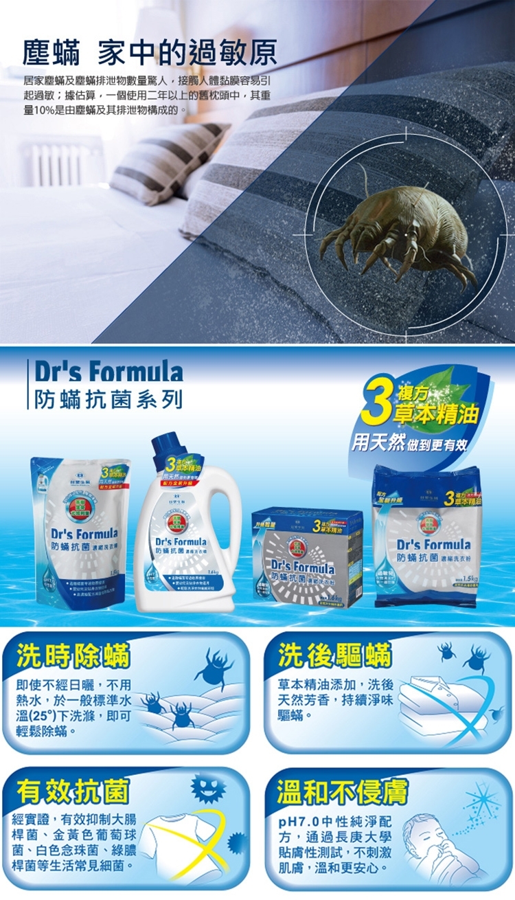 洗時除蹣、洗後驅蹣 有效抗菌防蹣