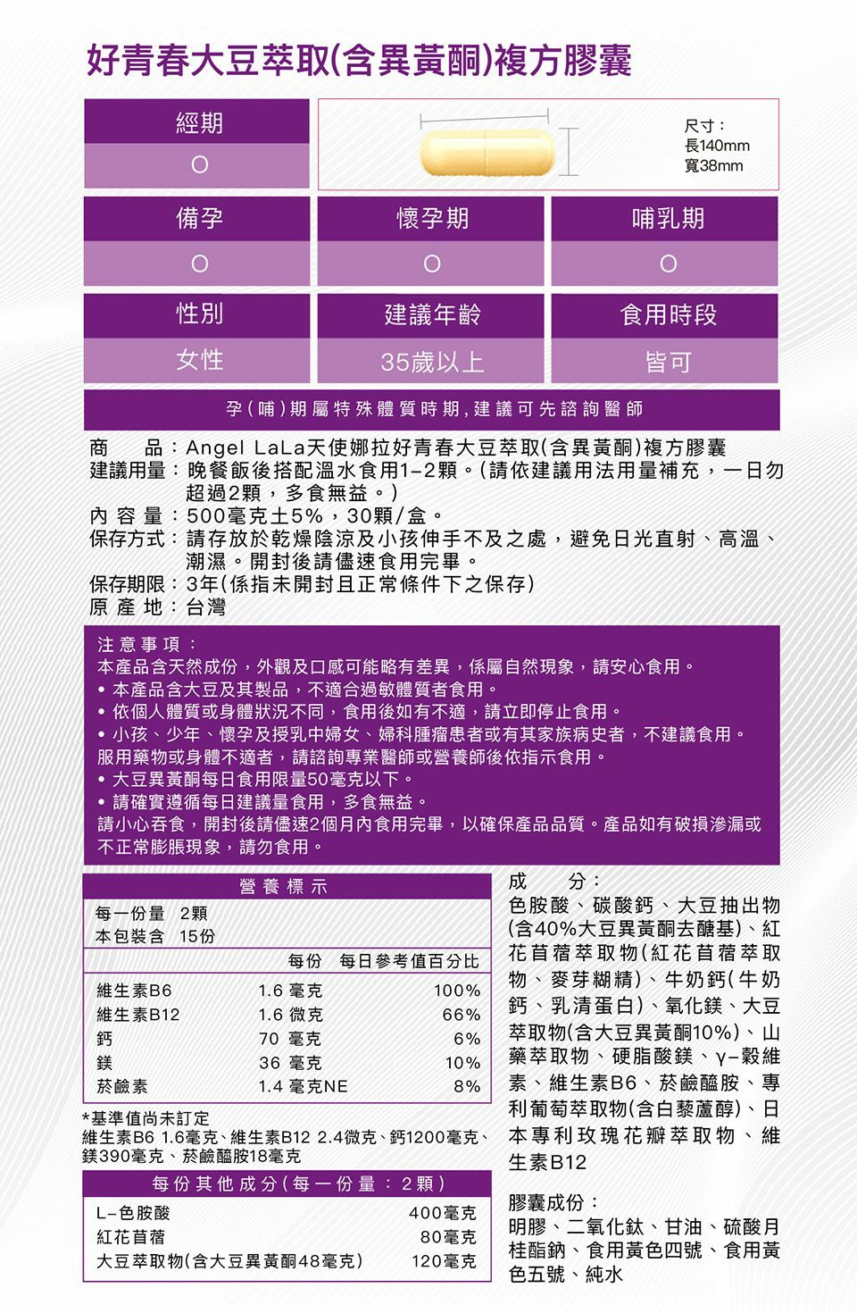 | 商品名稱 | 好青春大豆萃取(含異黃酮)複方膠囊 |