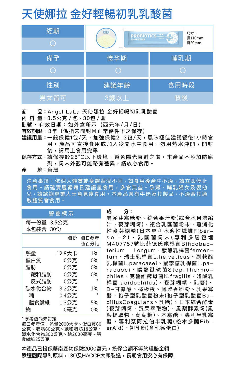 | 商品名稱 | Angel LaLa 天使娜拉 初乳乳酸菌 |