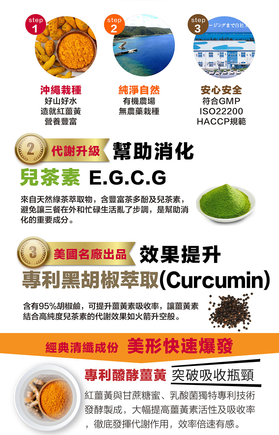 4.內容物名稱(成分):薑黃粉末、桑葉萃取粉、牛磺酸、磷酸鈣、微結晶狀-纖維素、綠茶萃取物(含兒茶素)、西伯利亞人參、仙人掌粉、麥芽糊精、聚乙烯口比咯宛酮、硬脂酸鎂、烴丙機甲基纖維素(烴丙機甲基纖維素、水、氯化鈉)、二氧化矽、發酵薑黃粉、聚乙二醇(聚乙二醇、二丁基烴基甲苯)、薑黃素、黑胡椒萃取、番紅花萃取。