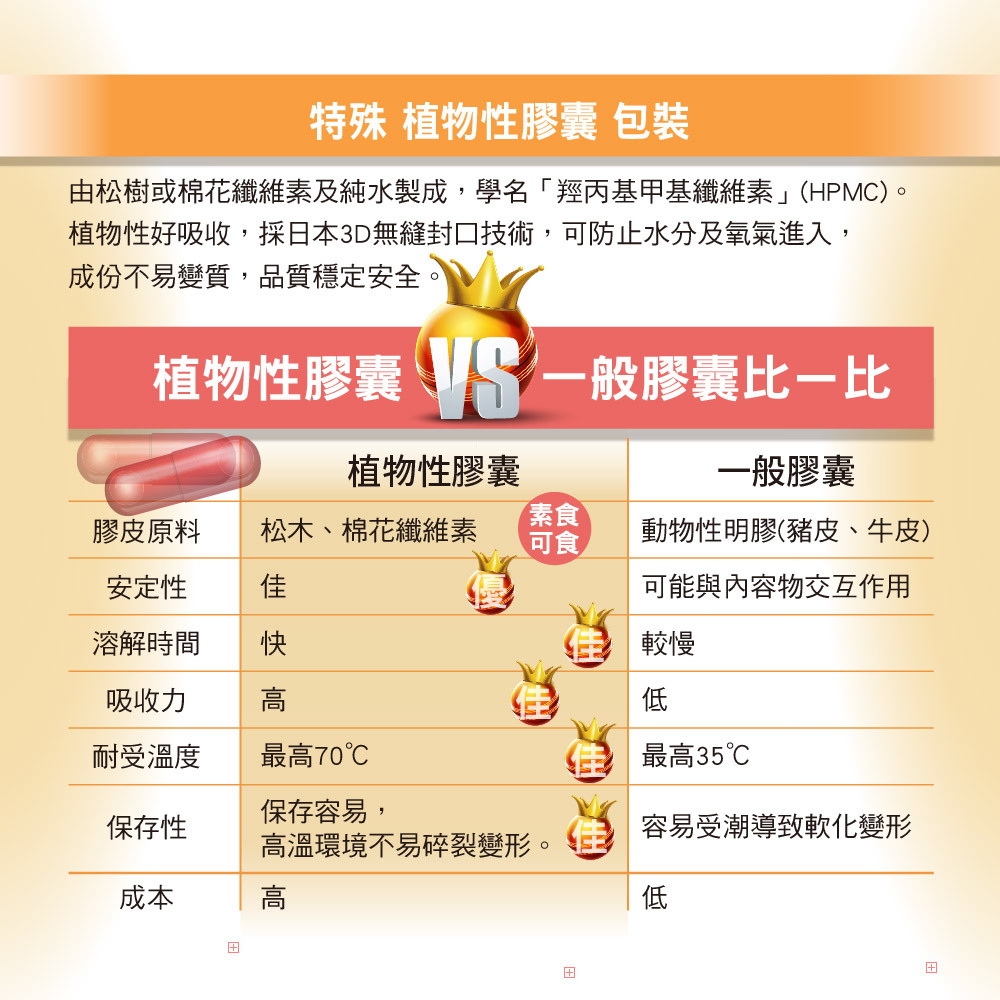 ●植物性硬膠囊,素食可食