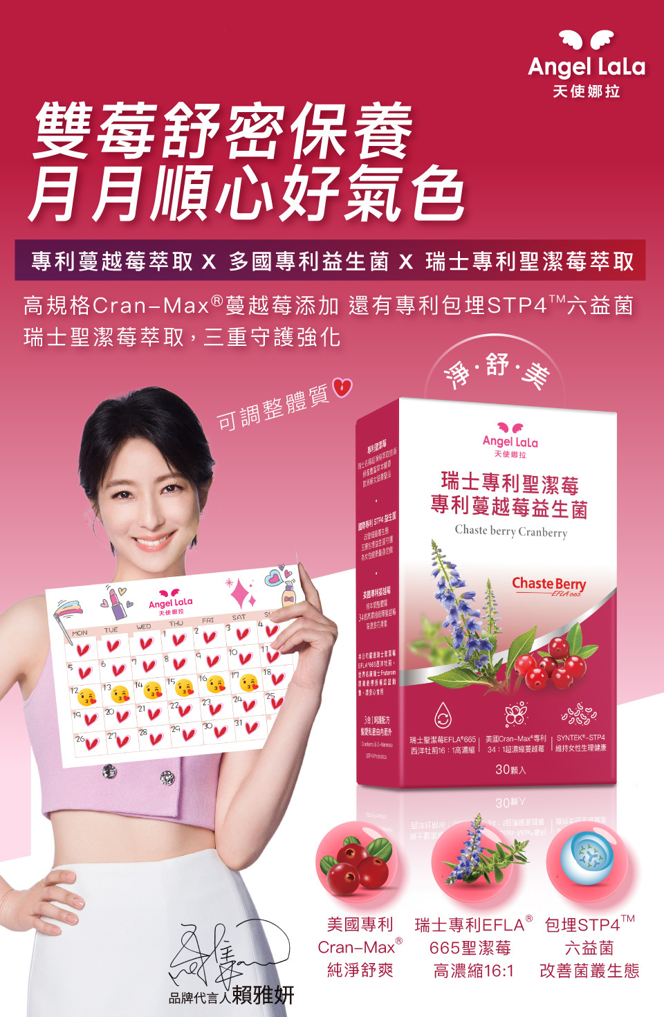 【Angel LaLa天使娜拉】瑞士專利聖潔莓蔓越莓益生菌膠囊(30顆/盒)