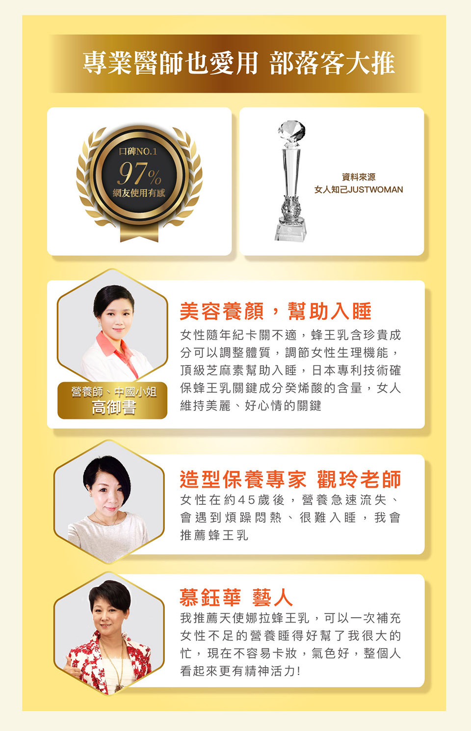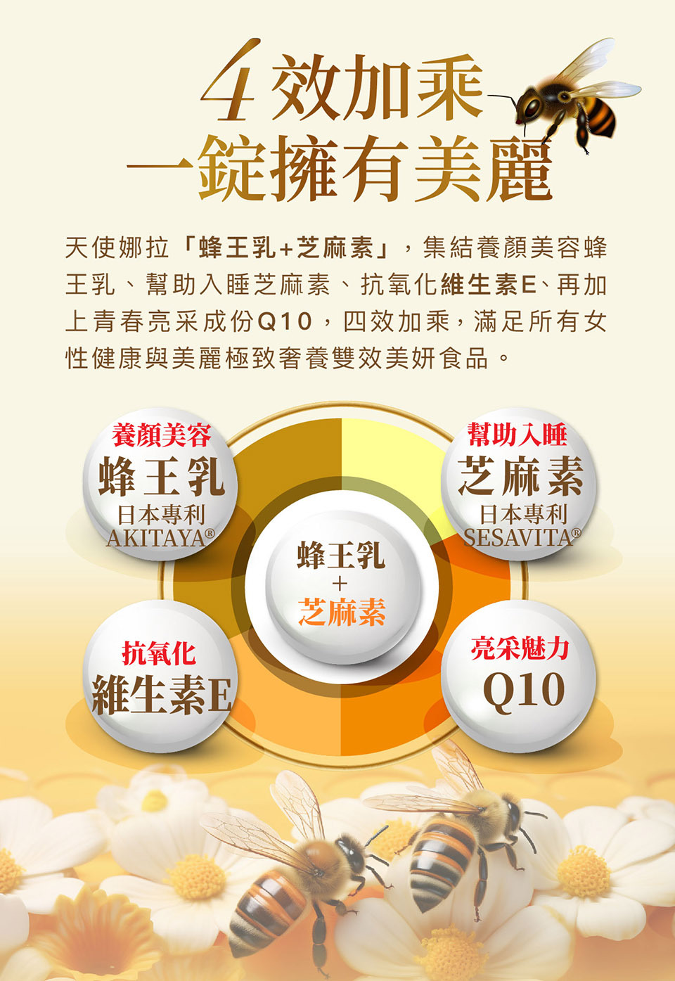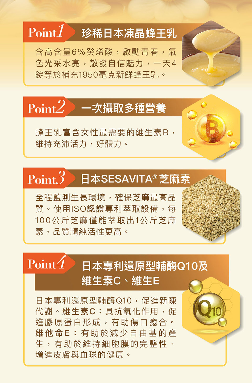 主成分 蜂王漿/蜂王乳, 五味子/芝麻素, 輔酶Q10