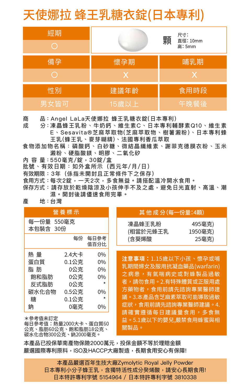 商品名稱 蜂王乳(日本專利)