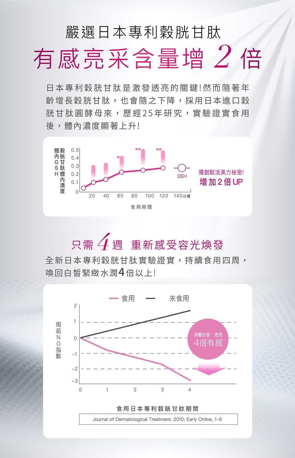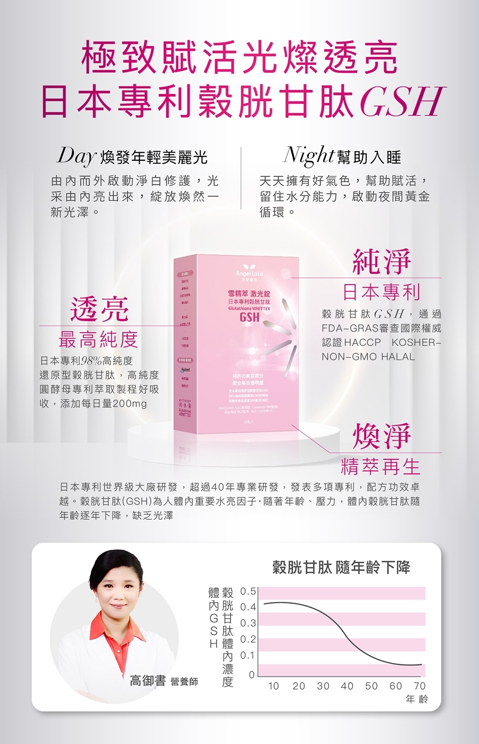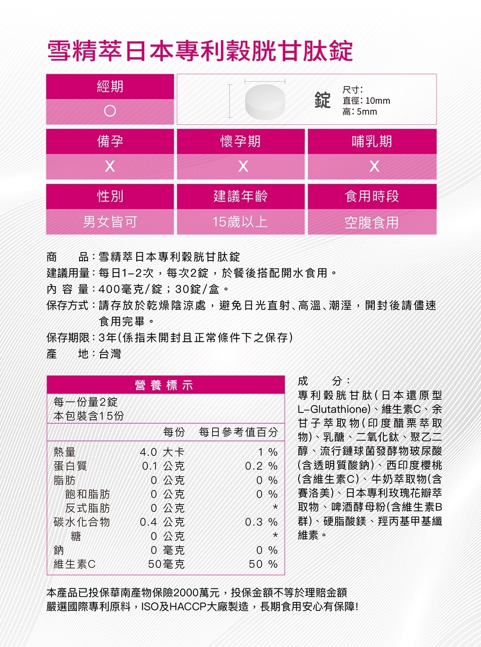 *本產品含穀胱甘肽、牛奶及其製品,不適合過敏體質者食用。