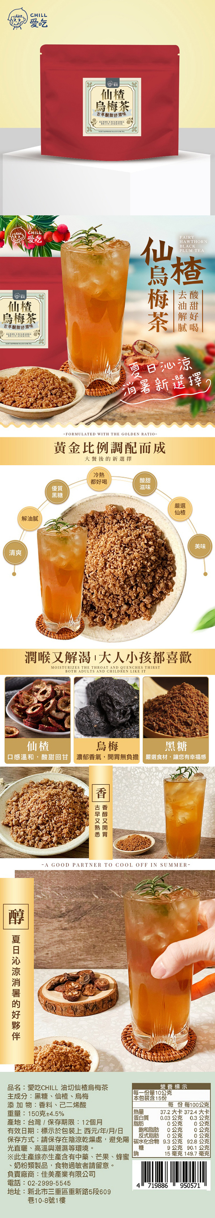 成份 : 黑糖、仙楂、烏梅、香料、已二烯酸(防腐劑)