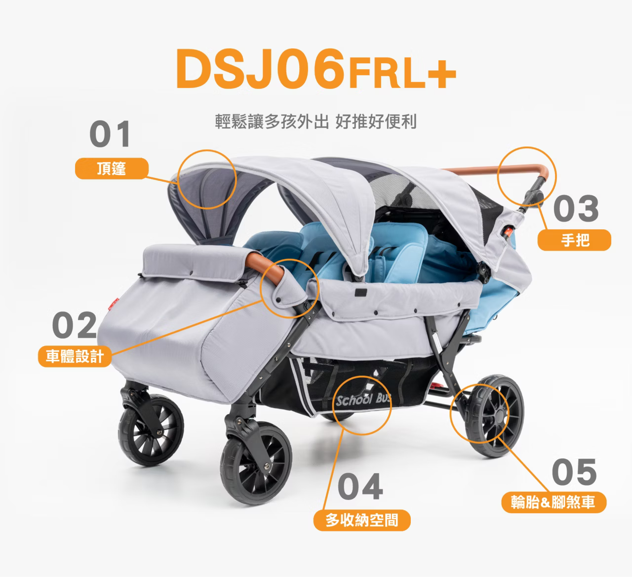 • 六個獨立座位,每位寶寶都有舒適獨立空間