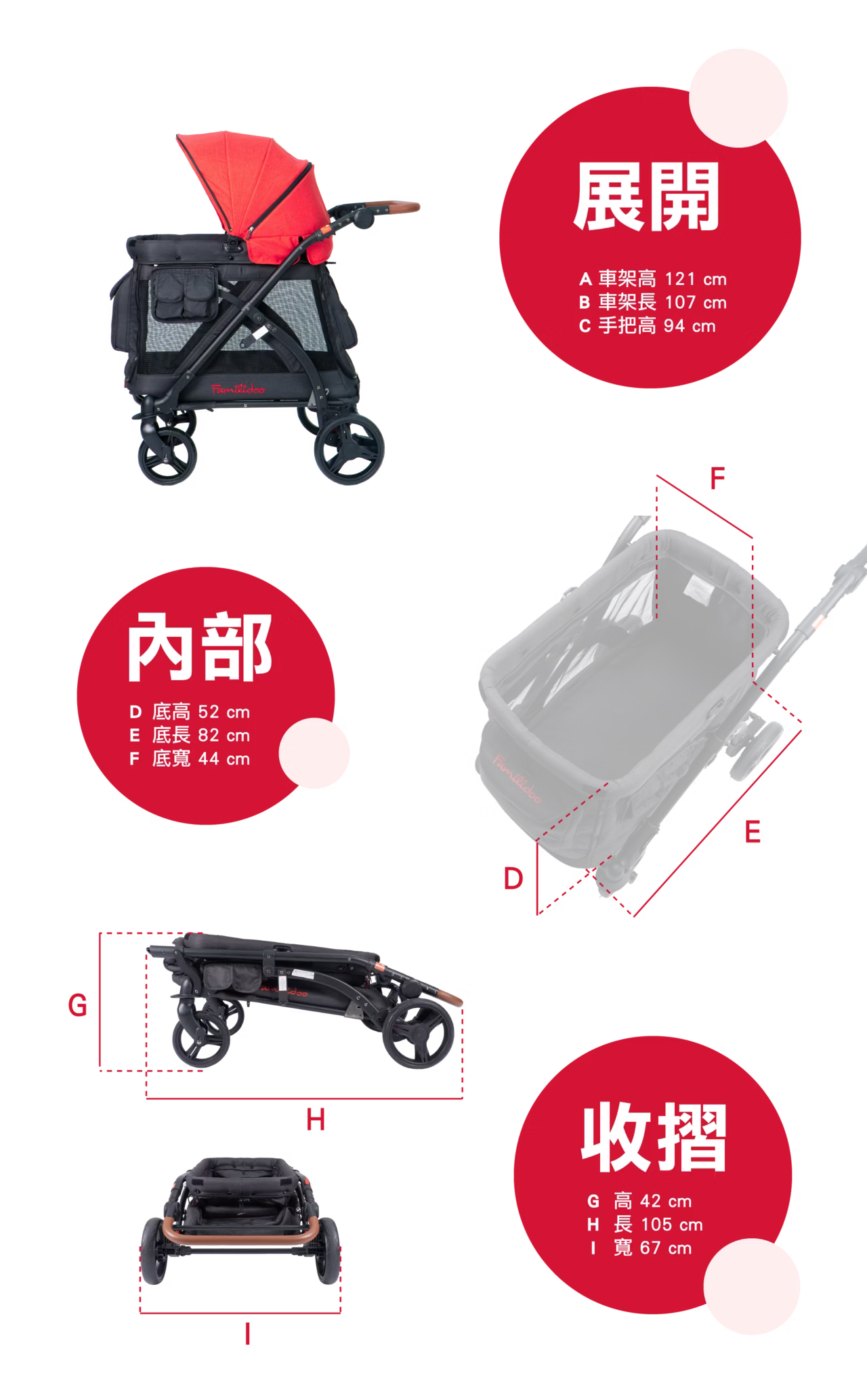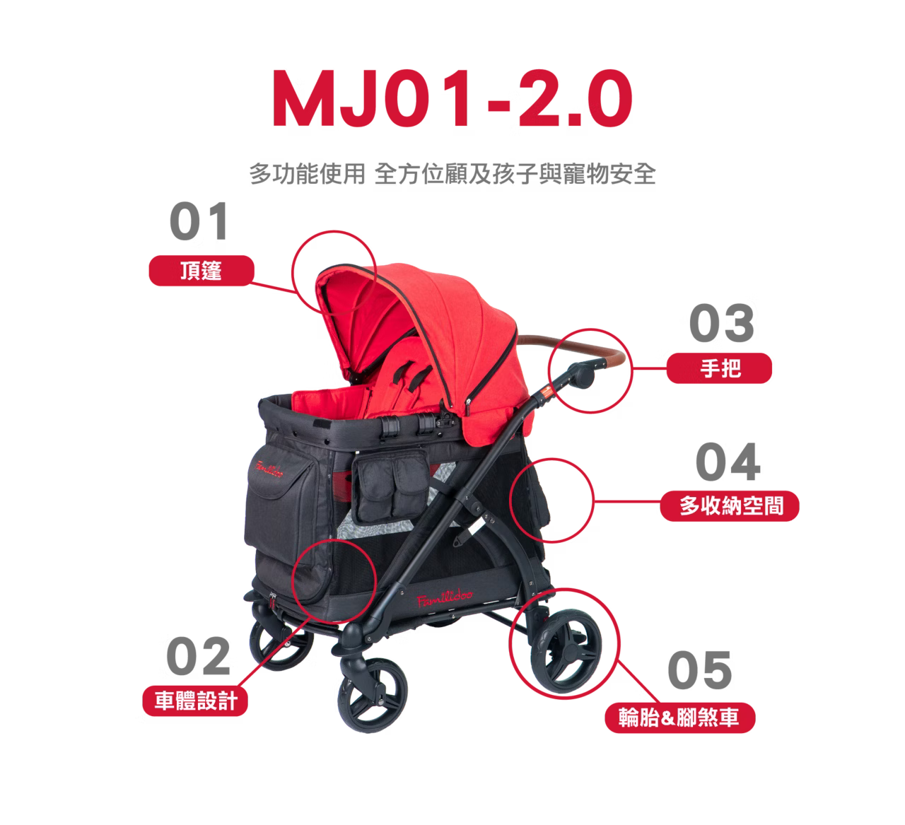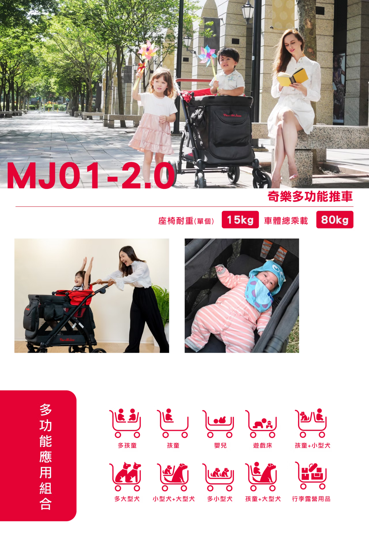 【Familidoo 法米多】MJ01-2.0 奇樂單人座多功能推車(紅)