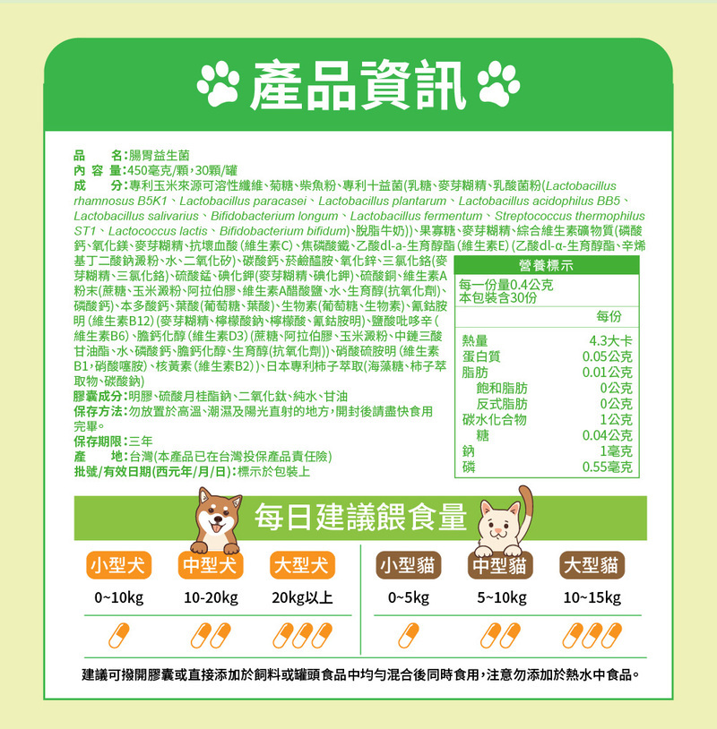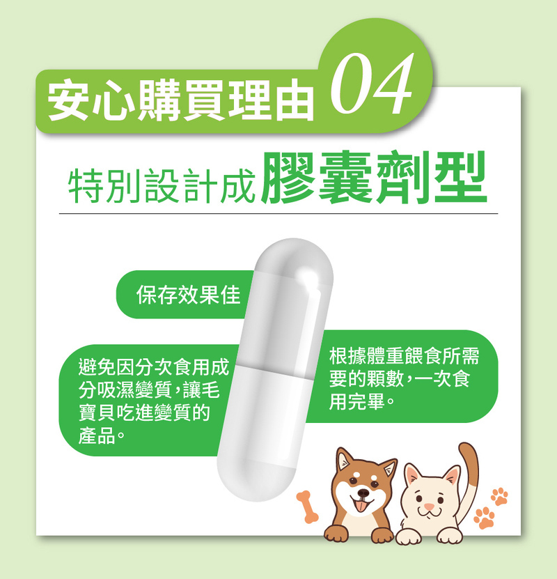 3. 建議可撥開膠囊或直接添加於飼料或罐頭食品中均勻