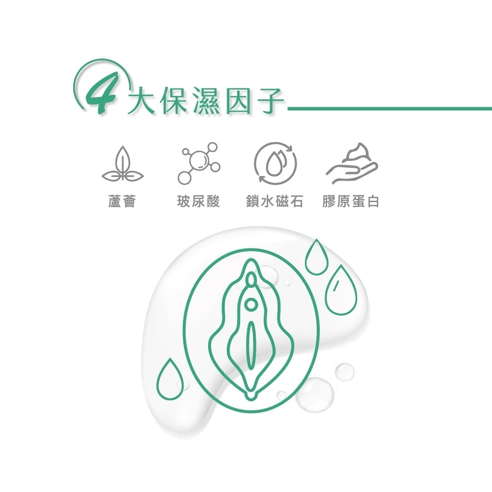 ◆含四大保濕聖品 - 玻尿酸、蘆薈、膠原蛋白、鎖水磁石。
