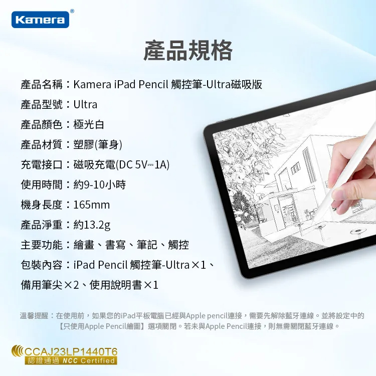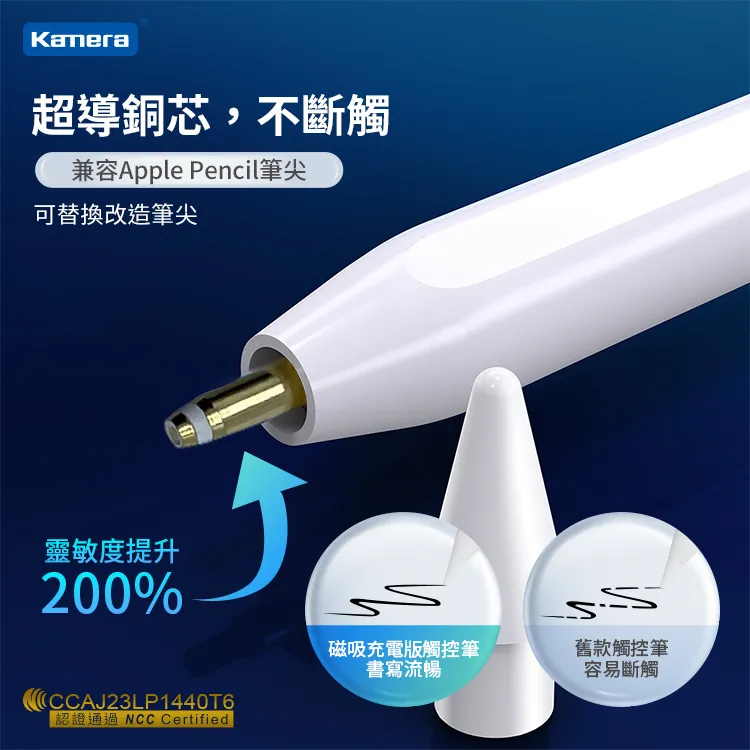 ● 可替換筆尖 兼容Apple Pencil筆尖 超導銅芯不斷觸 一體設計筆身增強信號傳輸