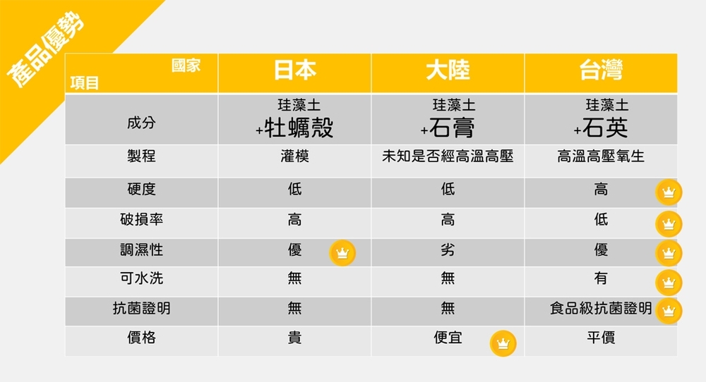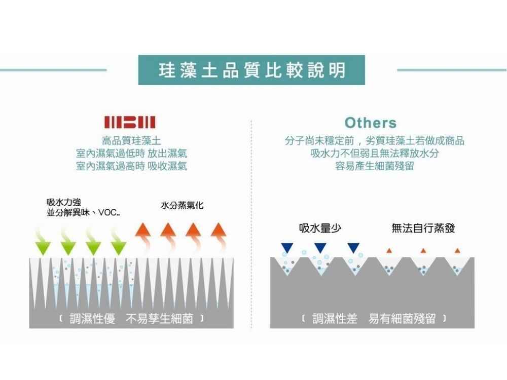 珪藻土(又稱硅藻土、矽藻土), 是海底長年堆積的天然礦物化石, 天然無毒又環保, 具有強大吸水力, 可以迅速吸收多餘水氣, 並且快速達到除濕、調濕、防潮、除臭的功效,還可以改善居家環境, 讓室內更加乾爽舒適。