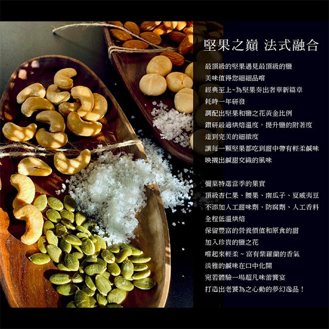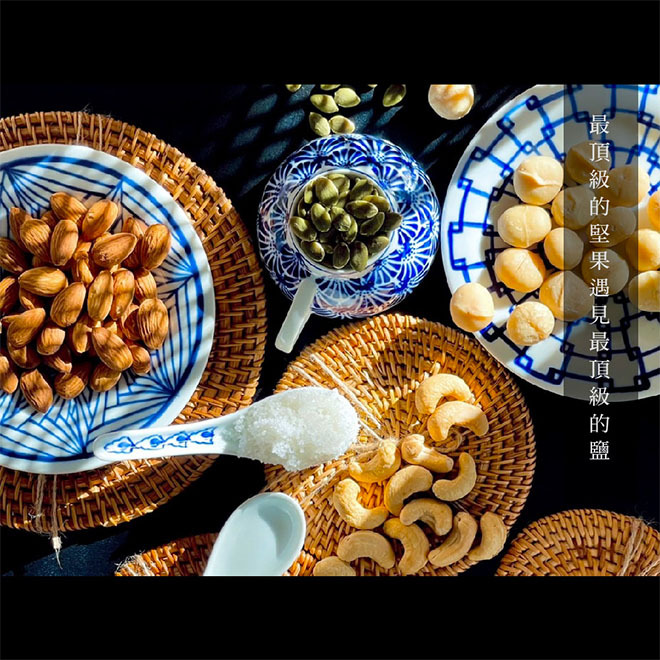 品嚐頂奢堅果輕撒上歐陸傳奇頂級食材鹽之花,