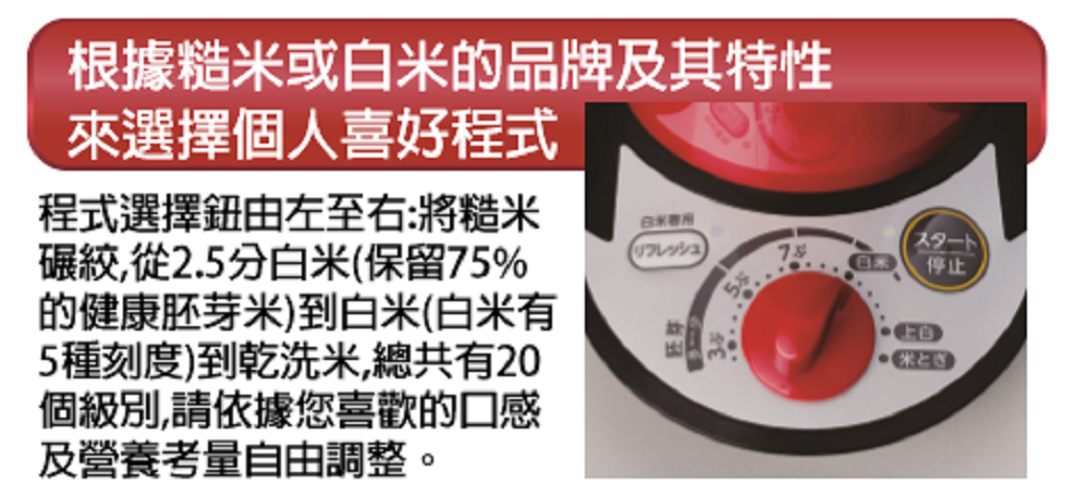 ● 根據個人喜好隨心所欲調整,保留 75% 的健康胚芽糙米到甘醇米心上白米。