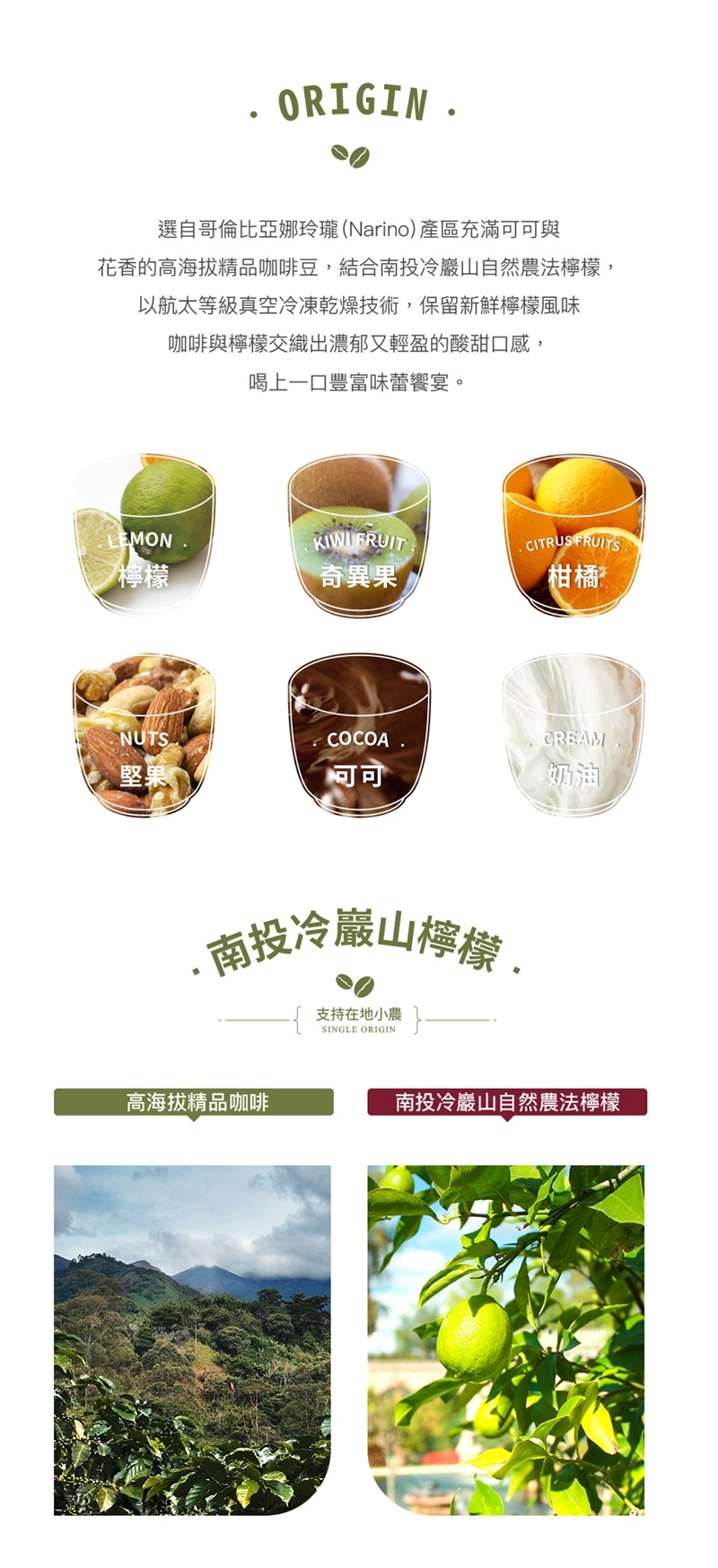 "哥倫比亞娜玲瓏咖啡 ╳ 南投冷巖山自然農法檸檬,交織出濃郁又輕盈的酸甜口感