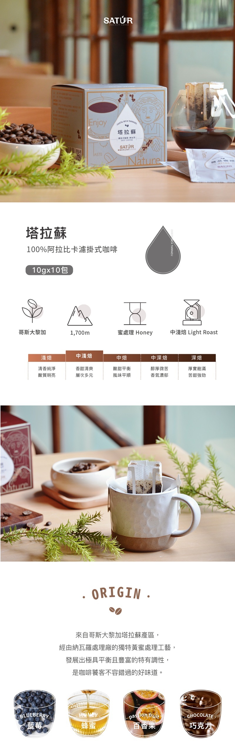來自哥斯大黎加塔拉蘇產區,採用保留部分果肉的蜜處理發酵方式,相較於傳統的發酵法更需專注細緻。