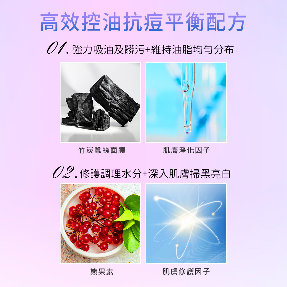 肌膚淨化因子、肌膚修護因子、花蕊萃取嫩膚素、乳酸酵素、熊果素、傳明酸、洋甘菊萃取、膠原蛋白、珍珠萃取、蘆薈萃取、胺基酸