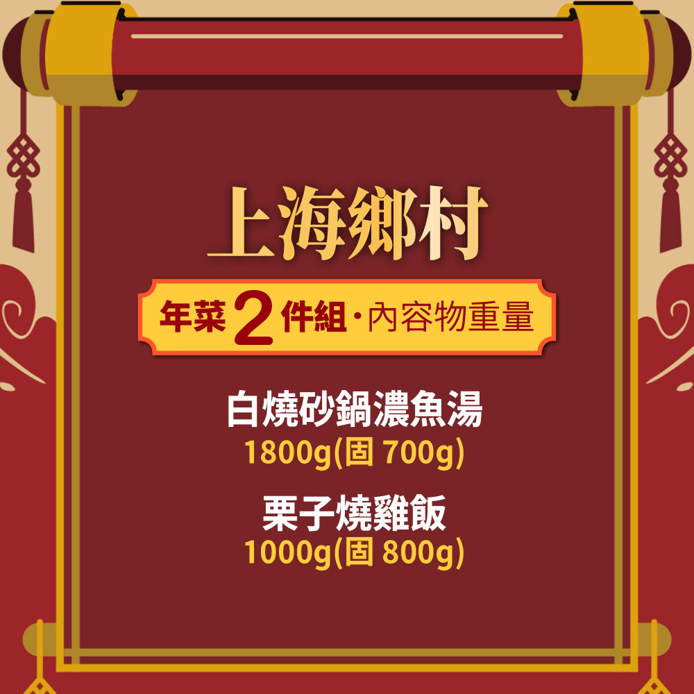 【上海鄉村】年菜2件組(白燒砂鍋濃魚湯+栗子燒雞飯)