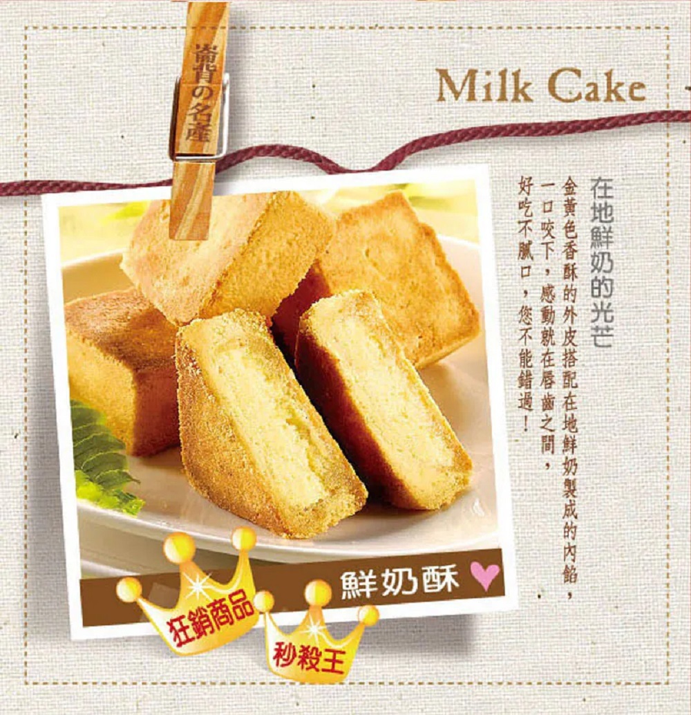 ● 選用崙背酪農區的優質鮮奶製成的餅皮。