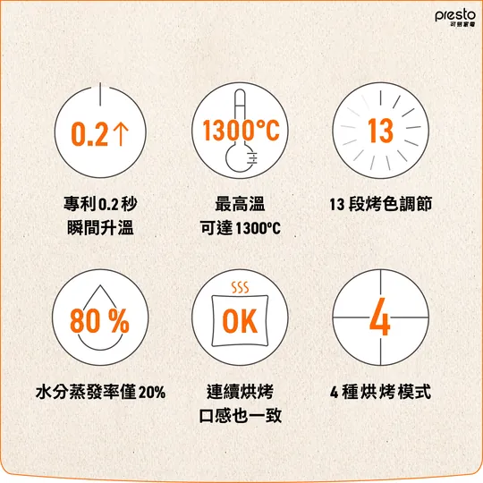 ✔️免預熱直接烤,搭載遠紅外石墨 0.2 秒瞬熱力,高溫快速鎖住 80% 飽水度