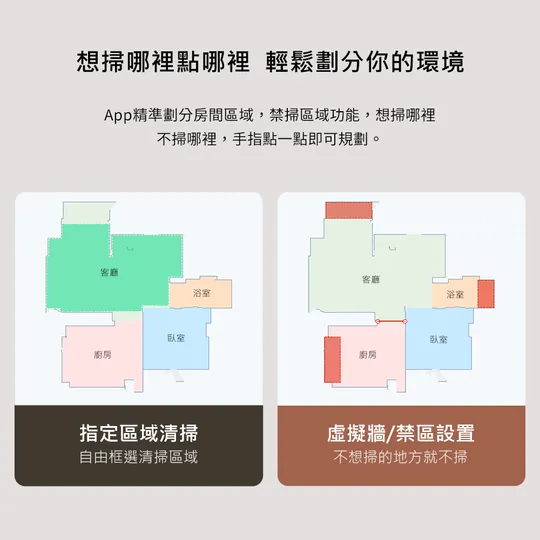 11.遠端操控功能,使用app輕鬆設置欲清掃範圍及禁區
