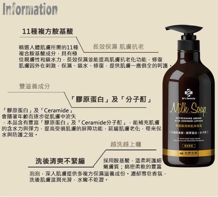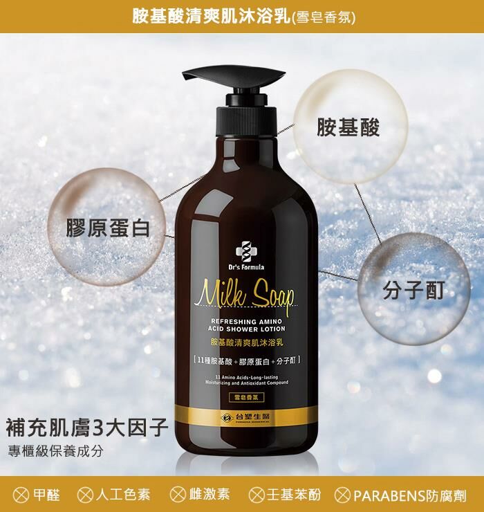 商品規格:《台塑生醫》Dr's Formula胺基酸清爽肌沐浴乳 (雪皂香氛) 800g
