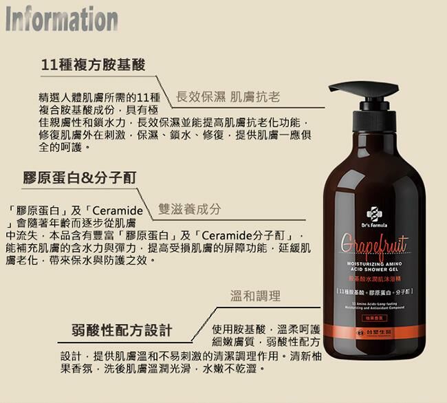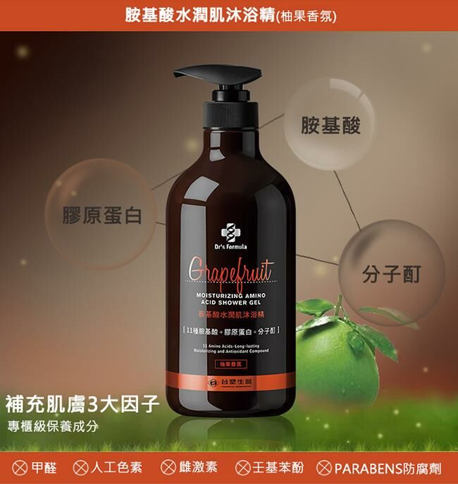商品規格:《台塑生醫》Dr's Formula胺基酸水潤肌沐浴精 (柚果香氛) 800g