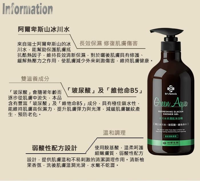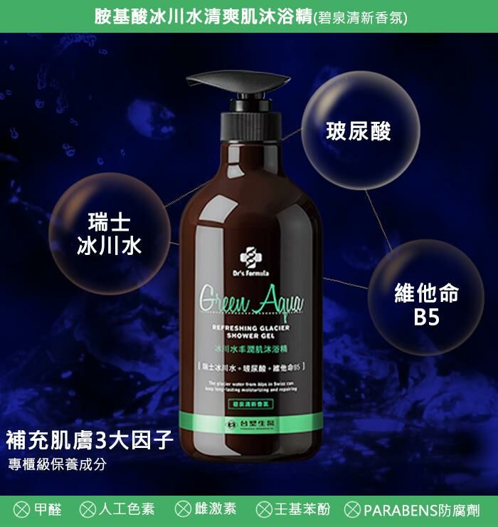 商品規格:《台塑生醫》Dr's Formula冰川水丰潤肌沐浴精 (碧泉清新香氛) 800g