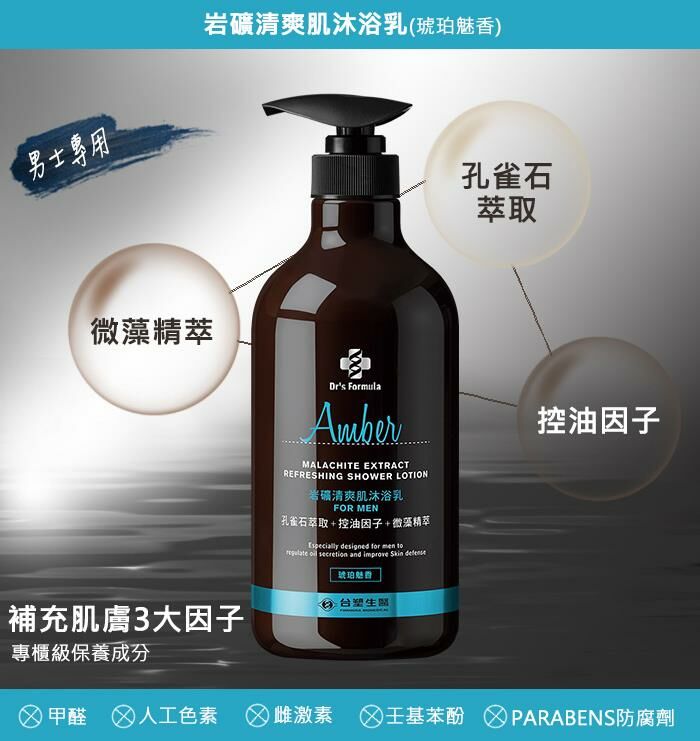商品規格:《台塑生醫》Dr's Formula岩礦清爽肌沐浴乳 (琥珀魅香) 800g