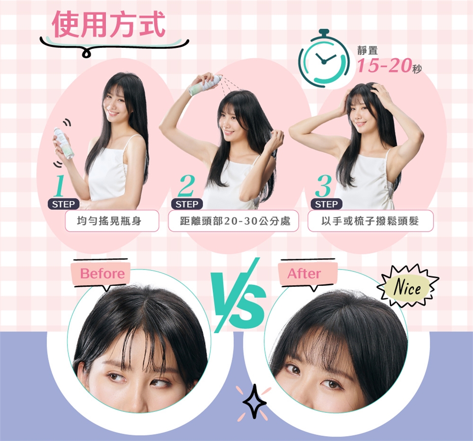 使用方法: 使用前請均勻搖晃瓶身,距離頭部20-30公分處,噴在較油或有異味之髮根或髮絲處,靜置15-20秒後,再以手或梳子撥鬆頭髮即可。