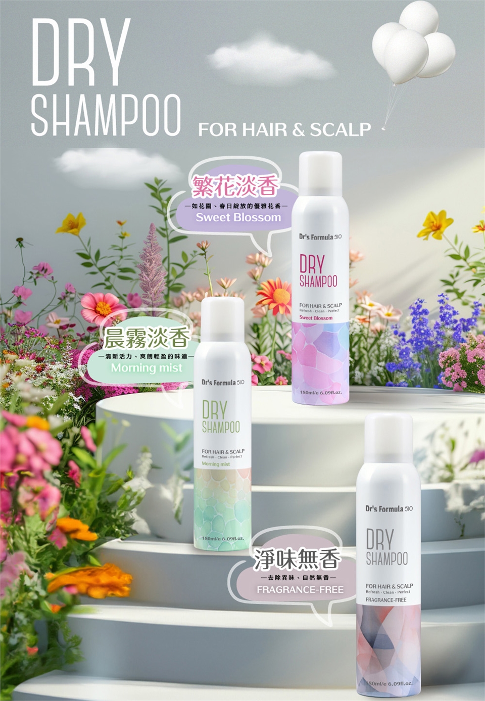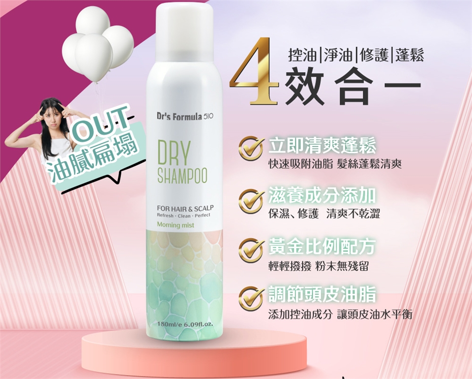 【台塑生醫】Dr’s Formula 510淨油蓬鬆乾洗髮噴霧(晨霧淡香)180ml*4入