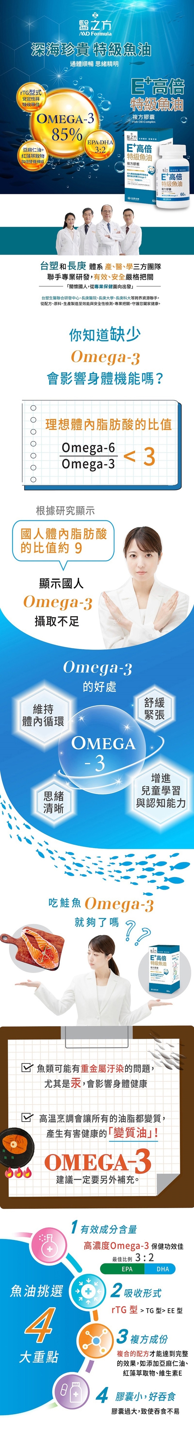 商品名稱:【台塑生醫】E+高倍特級魚油複方膠囊(60粒/瓶)