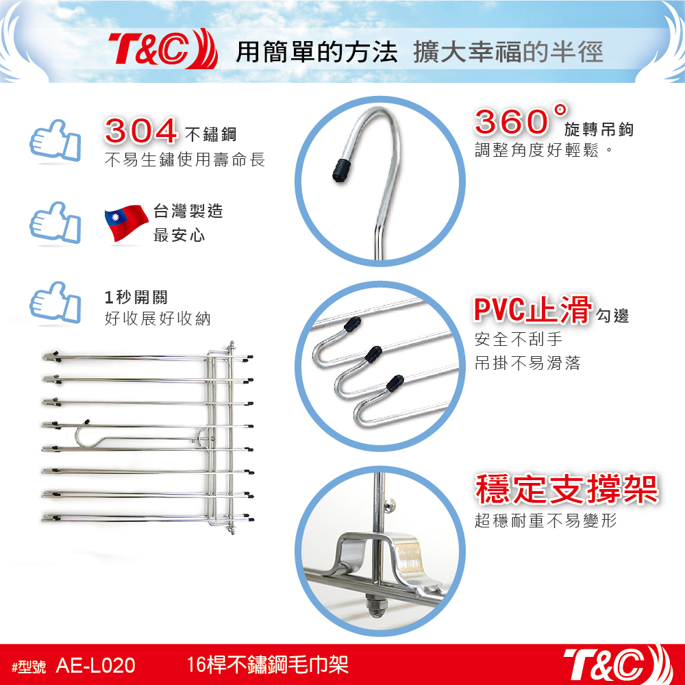 ◆可掛多條毛巾,附有勾邊止滑圓膠